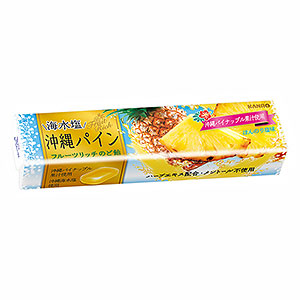 A=「フルーツリッチのど飴〈沖縄パイン〉」シリーズ新アイテム。香り高くジューシーなパイナップルとまろやかな海水塩で、爽やかな味。沖縄パイナップル果汁使用。ハーブエキス配合。