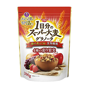 ◆商品特徴=パン・シリアル類。新シリーズ新アイテム。スーパー大麦“バーリーマックス”を、1食50g当たり12g配合。食物繊維、9種のビタミン、鉄、カルシウム入り。