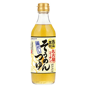 ◆商品特徴=調味料。リニューアル。シリーズ商品。名古屋コーチンエキス、九重純国産本みりん、三河産白醤油を使用し、削り節から抽出した和風だしを合わせた。醤油と甘みのバランスを調整し、麺との相性がよい。