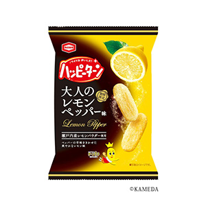 ◆商品特徴=菓子。リニューアル。シリーズ商品。期間限定。瀬戸内産レモンパウダーを増量し、香りや風味がアップ。レモンの爽やかさがハッピーパウダーの甘じょっぱさやスパイシーなペッパーの辛みとよく合い、大人も満足な本格的な味。