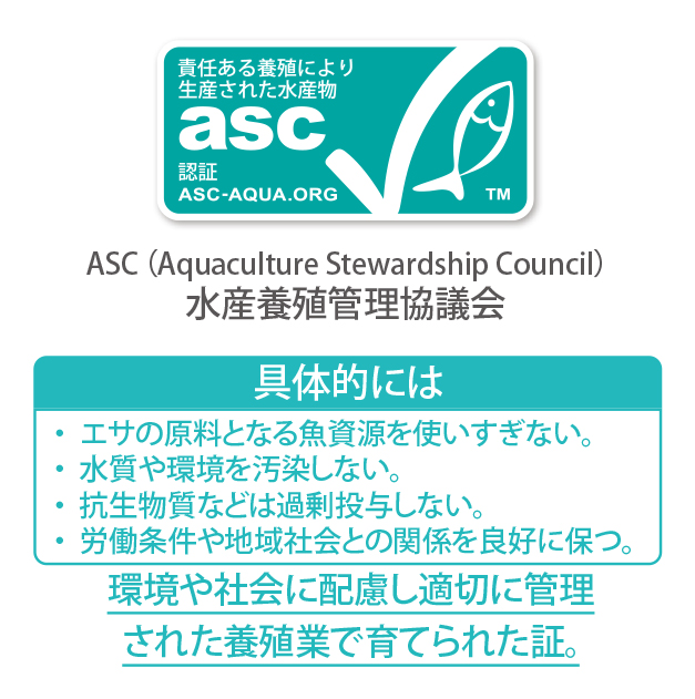 自然に近い環境で健康に育てることで、より安全で安心の品質に。また、環境保全や生物多様性に考慮し、国際認証「ASC」を取得しました。
