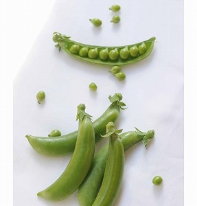 メンデルの法則で有名なえんどう、その若ざやであるさやえんどう(絹さや)の仲間で、中の豆が大きくなってもさやがやわらかくて甘みがあることが特徴。えんどうの若い実を食べるグリーンピース、実が小さくて形を感じない絹さや。その両方のおいしさが味わえる。