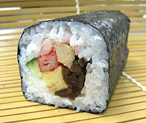 2010年のその方角は、「西南西」。太巻きを切らず(縁を切らないように)に、目を閉じて一言も喋らず、願い事を思い浮かべながらまるかじり。これで今年も家族無病息災!