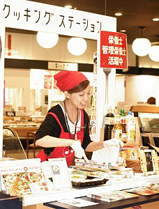 本日のおすすめメニューは「クッキングステーション」のブースから発信。本日は、「秋鮭のチャンチャン焼き」「丸ごとトマト入りおでん」「じゃがいものからしあえ」。秋を楽しむメニューをお届けしています。