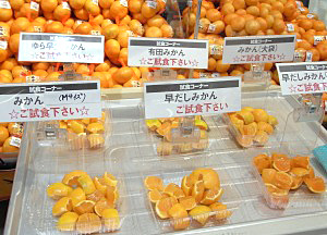 「どのみかんがお好きですか。色・甘さ・酸味・食感をお楽しみ下さい」と、その日お店で展開しているすべてのみかんを食べ比べていただいております。1キロ入りを自分で購入してお好みでなかったら寂しいですよね。だからまずお試しいただく。一番のものをシールで投票していただいて、その結果を「本日、お客様が一番おいしいとおっしゃるのはこれです」とお伝えしています。