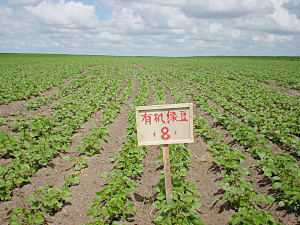 トップバリュグリーンアイの緑豆もやしの豆は、契約栽培で農薬や化学肥料を使用せず栽培されたもの。現在の契約農場は中国・内モンゴル自治区で、開発から12年をかけました。この農場では「有機JAS認証」「カバーシート」「非燻蒸証明書」「小分け認証」「栽培履歴」「残留農薬検査証」「圃場・選別場チェック」の有機栽培基準をすべて満たしています。こうして作られた豆は、日本国内数カ所の工場に運ばれ、厳密な管理の下、発芽させ栽培されます。