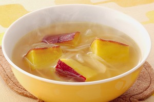(2)鍋に油を熱し、(1)のたまねぎをサッと炒め、A、さつまいもを加えて煮る。好みで黒こしょうをふっても良い。