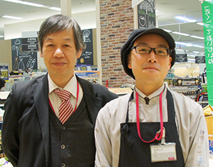 中谷友希店長 農産担当、竹下佳宏さん(右)と