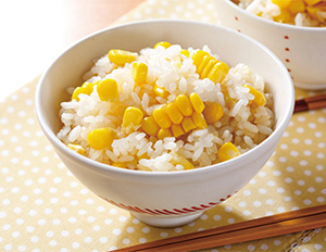 ※とうもろこしは米の上にのせて混ぜずに炊くのがポイント。