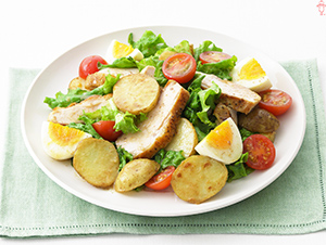 野菜は実と皮の間に栄養があり、新じゃがいもは皮が薄くそのまま食べられるため栄養効率の良さは抜群。じゃがいもはそもそも、ビタミンC・B1・B6、ナイアシン、カリウム、葉酸、食物繊維を含む優等生。新じゃがいもは、貯蔵ものよりさらにビタミンCが多く、リンゴの約8倍も。