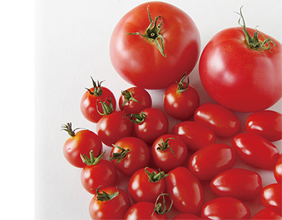 ラインナップも、大玉はもちろん包丁いらずのミニトマトがさらに充実。最近ではおなじみのヘタつきプチサイズの他、ヘタをつけずに収穫した長細系の品種が人気。ゼリー質が少ないのでトマトが苦手な人にもオススメ。さっと洗ってスナック感覚で食べたい。