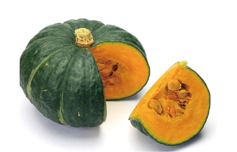 おいしいかぼちゃはヘタが枯れて乾いていて、皮にはつやがあり、かたく、しっかり重みがあります。カット物は種子がしっかり詰まっていて、果肉の色が鮮やかなものを。