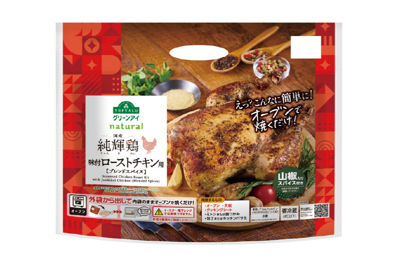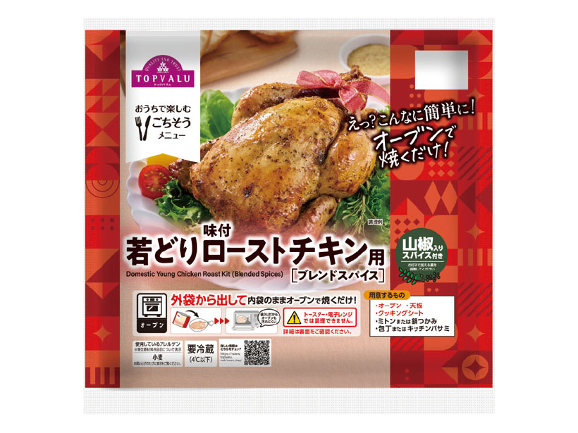 どちらもとにかく調理が簡単!ブレンドスパイスで味つけしたチキンを内袋のままオーブンに入れて、そのまま焼き上がりを待つだけ。スパイスは醤油ベースのうま味に加え、香りを引き立てるタイムを追加しています。さらに、今年の特徴は“味変”ができること。山椒入りスパイスを別添しているので、焼き上がり後に2種類のお味を楽しめます。また、パッケージのQRコードを読み込んでいただくことで、ピラフ、ポトフ、サラダ、ラーメンまでのアレンジレシピもご紹介。クリスマス後のお楽しみもご堪能ください。