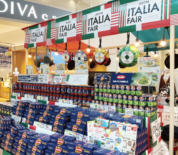 イオンは10月30日~11月3日、「イオン」「イオンスタイル」「マックスバリュ」など全国のグループ20社、約1700店舗で、イタリア大使館貿易促進部後援のもと、過去最大規模の「イオン イタリアフェア」を開催しました。