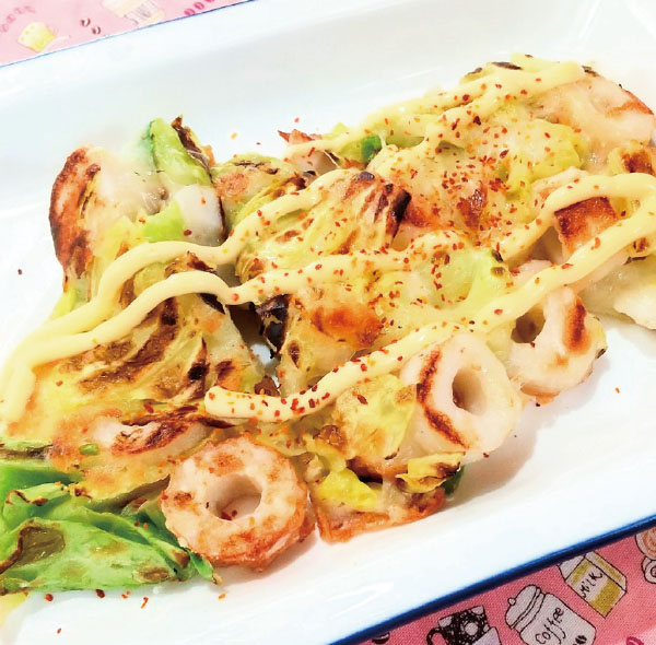 (3)食べやすい大きさに切り、お好みでマヨネーズ、七味唐辛子をかけていただく。