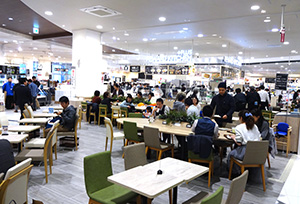 核店舗となるのは「イオンスタイル座間」。他店舗でも人気の「リワードキッチンプラス」「サンドイッチショップ」「ミニバル」の隣にイートインコーナーを設置し、「お惣菜を今ここで食べたい!」に応える「ここdeデリ」を実現。家族や友人と、さまざまなパーティにご利用ください。