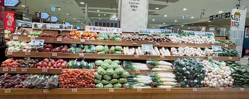 地場野菜の常設コーナー。JAいちかわの協力で地元産の旬の野菜が、新鮮なまま売り場に並びます