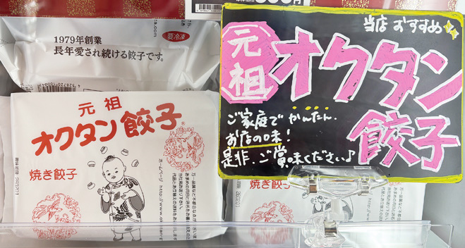 1,200品目が揃った冷凍食品コーナーで注目してほしいのは、地元で大人気の「元祖 オクタン餃子」。四川省の料理人によるレシピをもとにした、野菜たっぷり餃子です