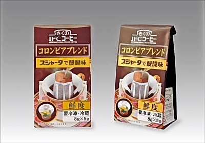 「きくのIFCコーヒー」は、鮮度を重視し、焙煎直後の豆を急速冷凍して、高機能ガス(アロマ)を封じ込める特許製法でつくられ、煎りたて・挽きたての鮮度と風味が味わえる。
