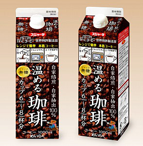 ▽「温める珈琲」 レンジでチンするだけで「喫茶店のコーヒーの味」。1000ml、200円(希望小売価格)※要冷蔵品