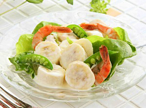 「バナナとスナック(スナップ)えんどうの塩麹サラダ」