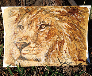 コーヒーを筆に含ませ絵を描く-初めての経験だ。東京・三鷹市のギャラリー「アートスペース吉祥寺」で開催された珈琲画教室に参加しました。講師は鈴木掌(つかさ)さん。アフリカ・ルワンダで服飾デザインを教えていた経歴も持つ意欲的なアーティストです。