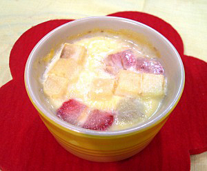 牛乳・乳製品を使ったバランス朝食メニュー:牛乳とフルーツの簡単レンジプリン