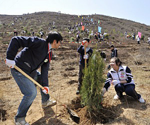 (財)イオン環境財団は4月末、北京市人民政府とともに「万里の長城植樹」を実施した。この活動は、環境問題に国境はないといわれるなか、1995年に北京市で開催された「第2回日中環境問題国際シンポジウム」において、数百年にわたる森林伐採で消滅した万里の長城周辺の森を再び蘇らせたいと願う(財)イオン環境財団からの提案を機に、同財団と北京市が協働して1998年から開始した。