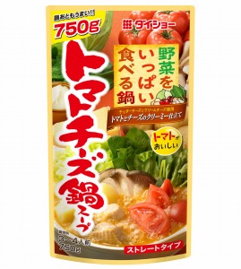 ダイショーのストレートタイプの鍋スープは、材料を切って煮るだけの簡単メニュー。中でも、新商品の「野菜をいっぱい食べる鍋 トマトチーズ鍋スープ」は、野菜本来のおいしさを十分に引き立たせるため、チェダーチーズとクリームチーズが溶け込んだスープにトマトのうまみとポークのコクを加えた鍋スープで、この秋のイチオシ。2面で紹介したレシピの他にも、さまざまな具材で鍋が楽しめる。