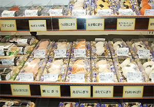 もう一つのポイントは、すぐに食べられる「おいしい惣菜」の強化で、「地域最大の惣菜売場」を目指しました。お弁当、お惣菜、お寿司からサラダ、フルーツ、デザートまで、さまざまな商品を取り揃え、会社帰りの夕食など少人数世帯の「簡単・便利でおいしい食卓」の提案・サポートに努めています。