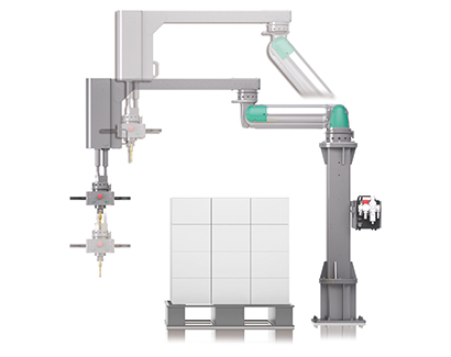 ●作業者の安全と使いやすさを追求「助力装置 PAW パレタイジング仕様」 CKD (株) TEL 0568-77-1111 * 食品製造現場での重労働の一つにパレットへの段積みや荷下ろし作業があるが、CKDの助力装置「パワフルアームPAWシリーズ」に、パレタイジング・デパレタイジング工程に特化した仕様が加わった。1100×1100mmパレットをカバーするとともに、作業者の安全、使いやすさを追
