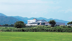 中央アルプスに抱かれた自然豊かな土地に立つ伊那工場。中央自動車道・伊那インターから車で約5分の位置にある