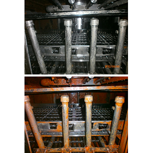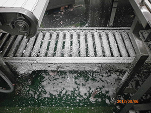 バイオフィルムを形成した洗浄機内(上)と、バイオフィルムのない洗浄機内(左)