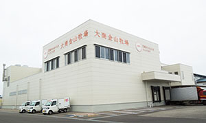 庄内空港から車で約10分、庄内臨空工業団地あまるめ内、公設庄内食肉流通センターに併設された大商金山牧場 のミートセンターと産地パックセンタ ー。産地パックセンターは365日稼働