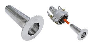◆カムロック・ホースカプラーに直接挿入できる「みつわパイ差しストレーナーKL(カムロック)シリーズ」 (株)みつわポンプ製作所 TEL 0594-76-1100 * 工業用ポンプやストレーナーなどを取り扱うみつわポンプ製作所は、ホース継手のカムロック・ホースカプラーにそのまま装着できるパイプ差し込み式ストレーナー「KL シリーズ」を1 月に販売開始した。同社ブランドの「みつわパイ差しストレ