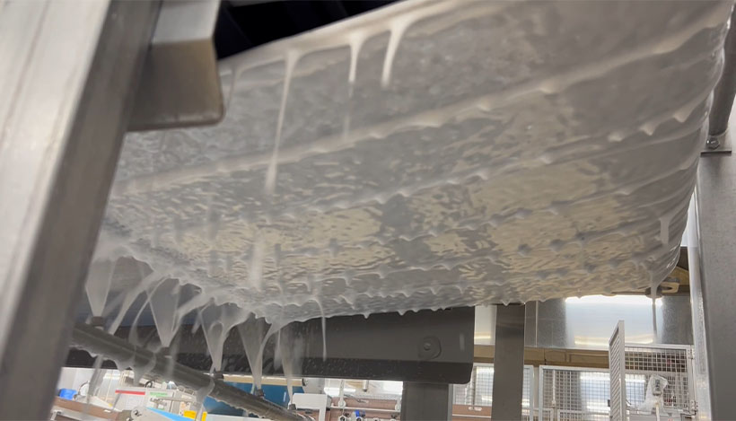 コンベアベルトの裏側など手の届きにくい箇所も洗浄できる