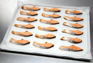 ●用途に合わせたサイズで作業の効率化に役立つ「クックパーEG(R)セパレート紙 別注品」 旭化成ホームプロダクツ(株) TEL 03-3296-3430 * 「クックパーEG(R)セパレート紙 別注品」は、食品工場のコンベヤオーブンや大型スチームコンベクションオーブンで使用する大型天板に対応する別注品の業務用セパレート紙。どのような天板にもジャストサイズでオーダーできる。