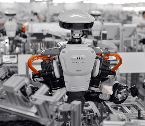 ○すでに工場で活躍している「人型ロボット」 橋梁やビル鉄骨などの鋼構造物、システム建築などを手掛ける川田工業は、ヘリコプターの開発・改造の経験を生かし、99年から産学共同のヒューマノイドロボットプロジェクトに参画している。 同社が「人と共存・協業して働く人型ロボット」をコンセプトに展開する次世代産業用ロボット「NEXTAGE」は、機械部品などの組み立て工程で実際に活躍している。頭部のステレオカメラで対象物との位置関係を立体
