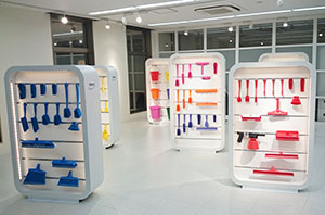 ●製品群をカラー別に展示 プレゼンテーションスペースも併設 清掃ツールメーカーVikan(ヴァイカン)社の日本総代理店であるキョーワクリーンは、昨年10月に本社社屋をリニューアルし、ショールームをオープンした。同社が提唱するハイジーン・カラーコーディング※のコンセプトを中心に、多岐にわたる優れた製品群を分かりやすく展示した。さらに、食品工場内部を模したプレゼンテーションスペースを併設し、製品の性能を実体験できるようにした。
