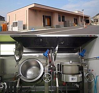 (写真上)=国道122号沿いに立つ「わびすけ」、(同下)=2つの釜でタレを作る