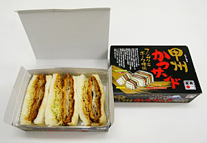 「甲州かつサンド」。受け取りの30分前に電話で注文する。開ける前からワクワクするようなパッケージデザイン