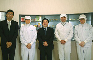 (左から)営業部長の岩崎英夫氏、生産管理の井上具也氏、木下専務、品質管理の野中貴之氏、生産技術の岡崎英昭氏