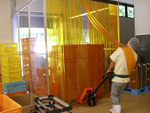 エレベーターの前をビニールカーテンで仕切りゾーニング
