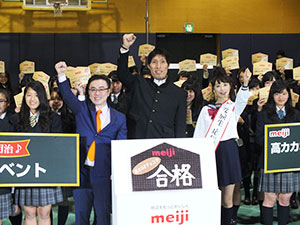 明治は、産官学で実施した大規模実証研究によって明らかになった、高カカオチョコレート摂取による、さまざまな知見を活用したプロモーション活動の展開を始めた。7日、東京・品川区の品川エトワール女子高等学校で「チョコレートは明治 受験生応援イベント」を開催した。実証研究で得られた、カカオ分72%以上の高カカオチョコレート摂取で、脳細胞の増加に必要とされ、各種研究で記憶・学習など認知機能との関連性が報告されているBDNFが有意に増加したとの知見を活用し、高カカオチョコで受験生を応援す