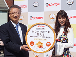 ソントンは3日、1日に発売したジャム・スプレッドカテゴリー初の機能性表示食品となる「ピーナッツクリーム」「黒ごまクリーム」「はちみつスプレッド」3品の新商品発表会を、横浜市の横浜赤レンガ倉庫前広場で開催された日本最大級のパンイベント「パンのフェス2017in横浜赤レンガ」会場内の特設ステージで開催した。ソントンホールディングスの石川紳一郎社長は、「当社として初めて機能性表示食品を発売した。消費者も健康への関心が高まる中、今後とも健康を意識した商品開発を行う」と述べた。