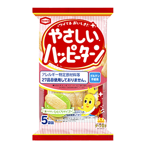 亀田製菓は27日、健康意識の高まりやアレルギーへの関心の高まりなど消費者の動向に合わせ、アレルギー特定原材料等27品目を使用していない、「65g やさしいハッピーターン」(写真)と「52g同4連」を全国発売する。 「ハッピーターン」ブランドは、発売から、季節歳時に合わせた話題性に富んだ期間限定品や楽しい味付け商品、百貨店ブランドでのアンテナショップ商品など、従来の米菓の領域を超えたさまざまな挑戦を続けている。 今回、子ども