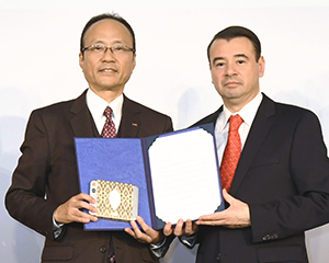 片桐裕之常務(左)とアルマンド・アリアガ臨時代理大使
