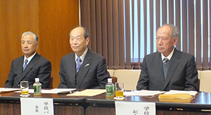 右から飯島延浩副会長、西川隆雄会長、細貝理榮副会長