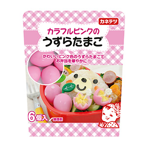 【関西】カネテツデリカフーズは新学期に向けて、キャラ弁・デコ弁が簡単にかわいくできる3品を1日に発売した。「カラフルピンクのうずらたまご」「パンダなると」「お星さまかまぼこお魚ソーセージ味」は水練り品やうずら卵を子ども好きにするモチーフにし、時間がない、料理が苦手など弁当作りの悩み解消に一役買う。 「カラフルピンクのうずらたまご(6個)」はピンクに着色したうずら卵。ギザギザに切り込みを入れて割るとピンクの花形になって弁当を華やかにする。イースターメ