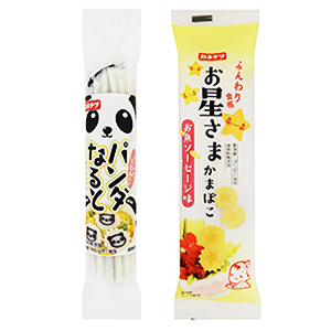 パンダなると(左)とお星さまかまぼこお魚ソーセージ味